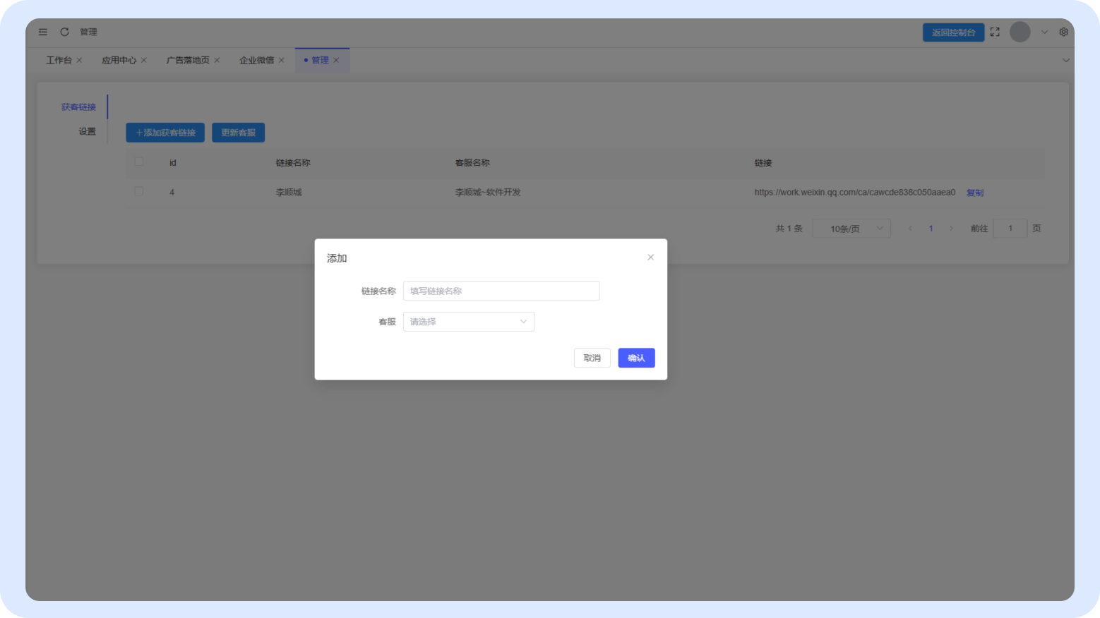 添加获客链接